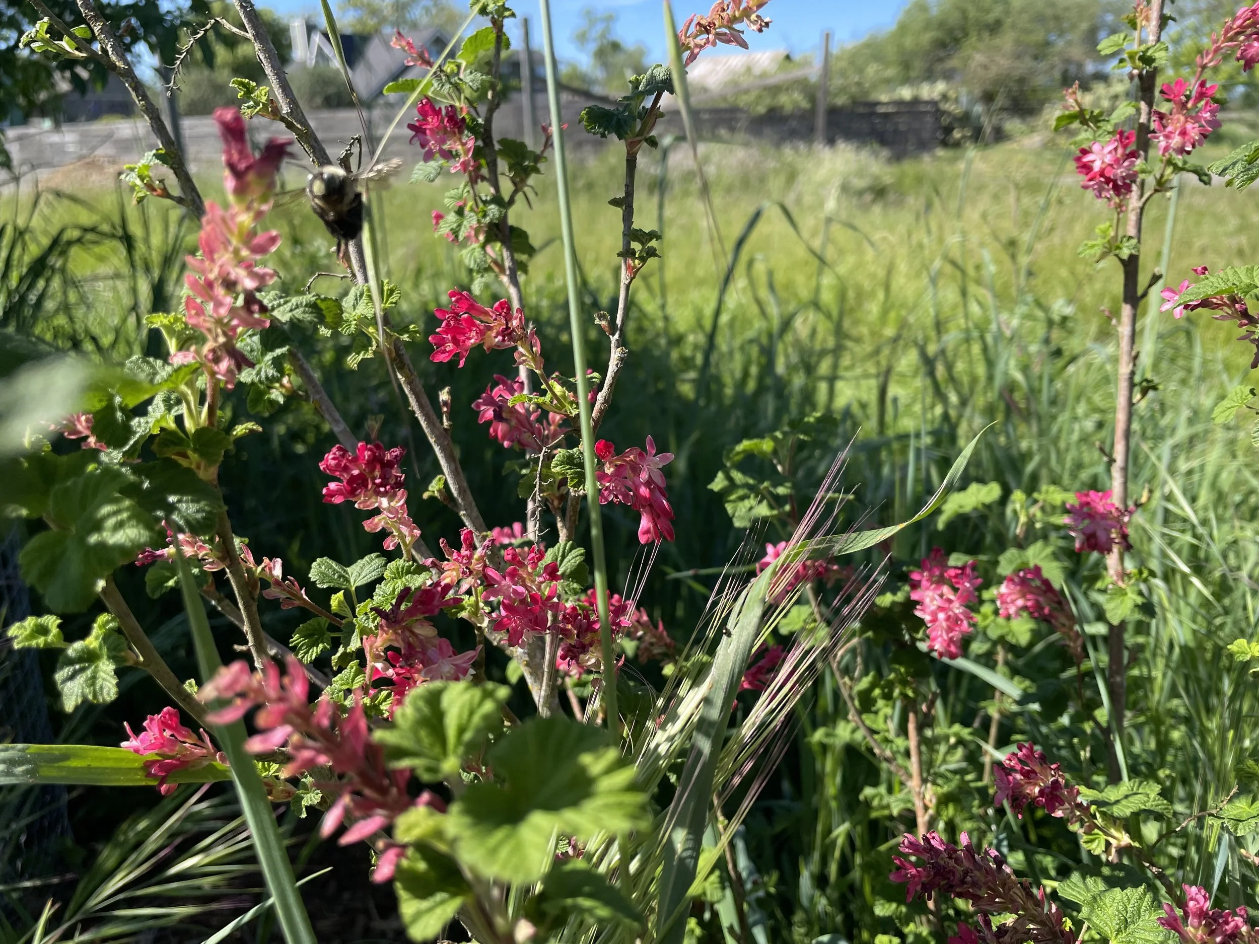 Bumblebee enjoying the flowering currants in the hedgerow.